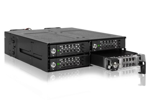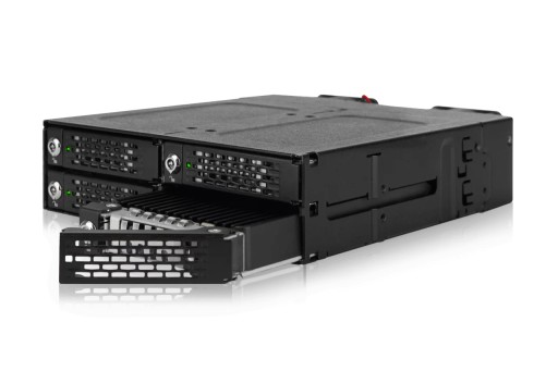 Przedstawiamy ToughArmor MB720MK-B V3, wytrzymałą wyjmowaną obudowę dla czterech dysków M.2 PCIe 4.0 NVMe SSD, przeznaczoną do wnęki na napęd optyczny 5,25". Ta potężna obudowa obsługuje niesamowicie szybki transfer danych, aż do 64 Gb/s, za pośrednictwem interfejsu OCuLink (SFF-8612) i jest kompatybilna z kartami hosta Tri-mode. Montaż i demontaż dysków M.2 NVMe SSD nigdy nie był prostszy, dzięki wyjmowanym tackom na dyski z regulowanymi beznarzędziowo komorami na dyski M.2. Możesz łatwo wymieniać dyski, bez konieczności otwierania obudowy komputera lub majstrowania przy śrubach montażowych.