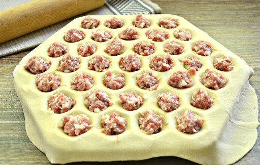 - rozłożyć farsz do wgłębień w cieście;