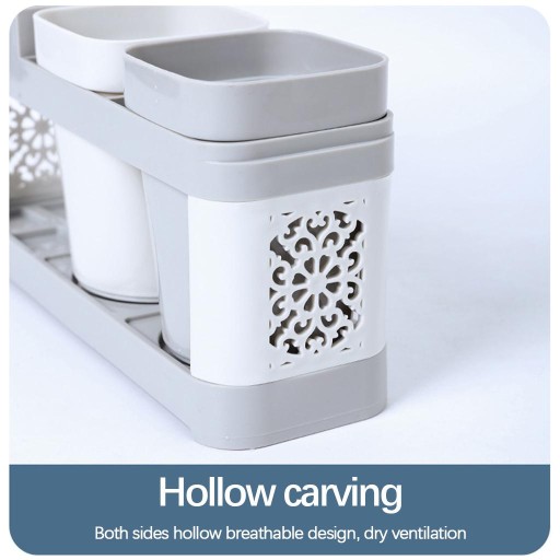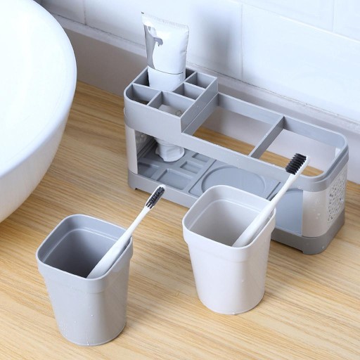 Uchwyt na szczoteczki do zębów z 5 otworami i 2 kubkami do płukania