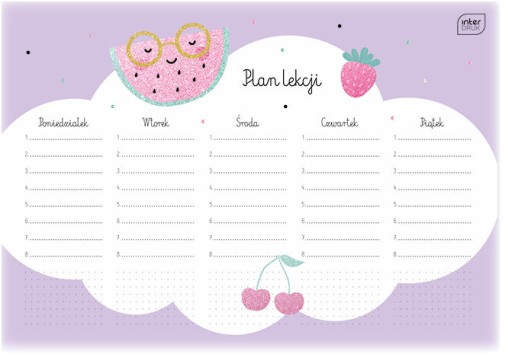 Plan Lekcji A4 Glitter Interdruk - praktyczne i estetyczne narzędzie dla uczniów i nauczycieli. Organizuj swoje zajęcia w sposób efektywny dzięki naszemu planowi lekcji w formacie A4. Wybierz spośród różnorodnych wzorów i kolorów, które dodadzą blasku Twojemu codziennemu planowaniu.
