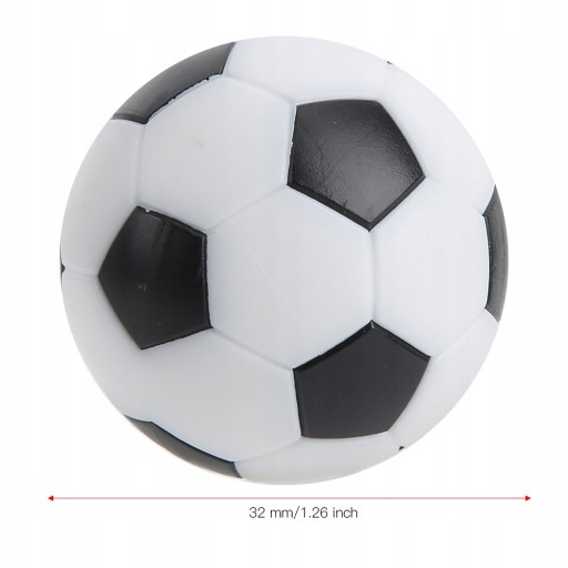 2. Każda mała piłka ma średnicę 32 mm/1,26 cala i dobrze pasuje do większości standardowych gier piłkarskich, sugerowanych dla stołów o długości do 135 cm.