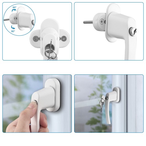 🔒-Z przyciskiem umożliwiającym bezpośrednie naciśnięcie cylindra zamka na zamku okna w celu jego zablokowania, co jest bardzo wygodne. (Uwaga: do odblokowania można użyć wyłącznie klucza)
