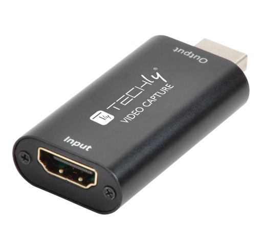 Grabber HDMI Techly I-USB-VIDEO-1080TY, P/N: 361919 – Karta Przechwytywania HDMI do USB, AV Grabber HDMI 1080p Przechwyć sygnał HDMI Techly I-USB-VIDEO-1080TY to innowacyjna karta umożliwiająca jednoczesne przechwytywanie sygnału audio i video z dowolnego urządzenia źródła sygnału HDMI i przesyłanie go do komputera lub smartphone poprzez USB w celu podglądu i/lub archiwizacji. Grabber HDMI Techly umożliwia również przechwytywanie strumieniowanego na żywo materiału video w wysokiej rozdzielczości oraz transmisję na żywo po podłączeniu kamery lub aparatu cyfrowego – idealnie sprawdzi się więc do video konferencji i transmisji online we wszelkiego typu serwisach Internetowych. Opis produktu: Umożliwia przechwytywanie sygnału audio-video HDMI i zapis poprzez port USB na dysku komputera Możliwość tworzenie transmisji na żywo (online) po podłączeniu kamery lub aparatu cyfrowego Współpraca z oprogramowaniem do przechwytywania video oraz transmisji online jak VLC, OBS, Amcap oraz innymi Obsługa wejściowego video o rozdzielczości maksymalnie do 3840x2160 przy 60Hz Obsługa wyjściowego video o rozdzielczości maksymalnie do 1920x1080 przy 60Hz Współpraca z dowolnym urządzeniem źródła sygnału HDMI bez zabezpieczeń HDCP Obsługa standardowych kabli HDMI (26 AWG) o długości maksymalnie do 15m Kompatybilność z systemami Windows oraz Android Zgodność ze standardem USB Video i UVC oraz USB Audio i UAC Nie wymaga stosowanie zewnętrznego źródła zasilania Kompaktowy i przenośny rozmiar Gwarancja 3 lata Parametry techniczne: Standardy i certyfikaty:CE WEEE Obsługa 8, 10 oraz 12-bitowej Głębi kolorów Maksymalna rozdzielczość video wejściowego: 3840x2160@60Hz Maksymalna rozdzielczość video wyjściowego: 1920x1080@60Hz Format wyjściowego video: YUV, JPEG Obsługa formatu audio L-PCM Maksymalna długość kabla HDMI: 15m (26 AWG) Złącza:1x USB-A męskie 1x HDMI żeńskie Napięcie: 5V DC, 0.4A Temperatura pracy: -10° - 55°C Materiał obudowy: metal Wymiary: 64 x 28 x 13 mm Waga: 21.4g Kolor: czarny Zawartość opakowania: Grabber HDMI 1080p Karta przychwytywania HDMI do USB Instrukcja użytkownika