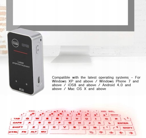 Wirtualna klawiatura projektora Bluetooth, mini klawiatura bezprzewodowa Bezprzewodowa klawiatura wirtualnej projekcji Interfejs USB z funkcją myszy do smartfona z systemem Android Tablet PC laptop.