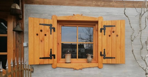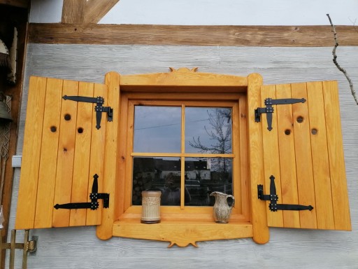 W tej aukcji mamy do zaoferowania piękne drewniane okiennice dwuskrzydłowe "z dziurkami".