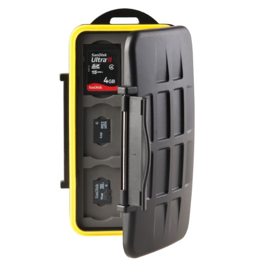 Wodoodporny pokrowiec na karty SD i micro SD. Trwała konstrukcja z poliwęglanu pozwala na doskonałą ochronę kart przed uderzeniami, wilgocią oraz zanieczyszczeniami. Etui może pomieścić do 12 kart SD i 12 micro SD. Silikonowe wytłoczenia wnętrza ściśle dopasowane do kształtu kart zapobiegają ich przesuwaniu oraz ułatwiają ich posegregowanie.