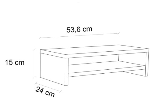 Podstawka pod monitor wykonana jest z płyty laminowanej o grubości 18 mm, zabezpieczonej obrzeżem ABS o gr. 1 mm. Podstawka jest łatwa w czyszczeniu. Posiada miejsce na klawiaturę oraz małą półeczkę. Tył podstawki jest lekko uniesiony, co pozwala na przeprowadzenie kabla.
