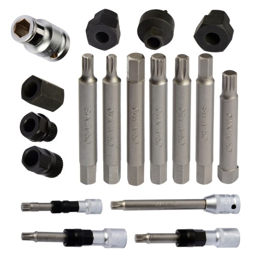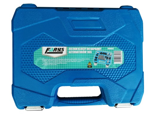 - W komplecie 18 elementów. Zestaw 18-stu kluczy do montażu i demontażu alternatorów ze sprzęgłem typu Bosch i Magneti Marelli.