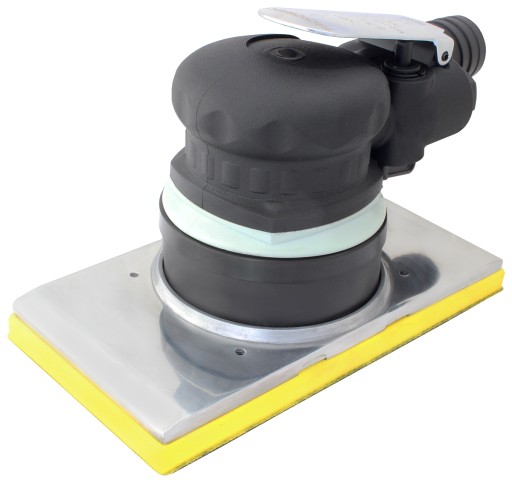 Pneumatyczna szlifierka prostokątna oscylacyjna model OBS-SL4 z stopą o wymiarach 175 x 94 mm wykonaną z miękkiego materiału, który nie ulega odkształceniom z wbudowanym odciągiem. Narzędzie posiada solidny ergonomiczny korpus pozwalający na pewny chwyt wraz z idealnym wyważeniem masy, pozwala na efektywniejszą pracę operatora. Szlifierka wykonane z stopów metali lekkich i kompozytów, przeznaczone do szlifowania różnego rodzaju materiałów. Szlifierka jest lekka, ergonomiczna i cicha, a praca nią nie powoduje dyskomfortu oraz pozwala na dotarcie w trudno dostępne miejsca. Narzędzie służy do szlifowania powierzchni drewnianych i metalowych. Szlifierka z możliwością regulacji obrotów zaworem tłumiącym przepływ powietrza.