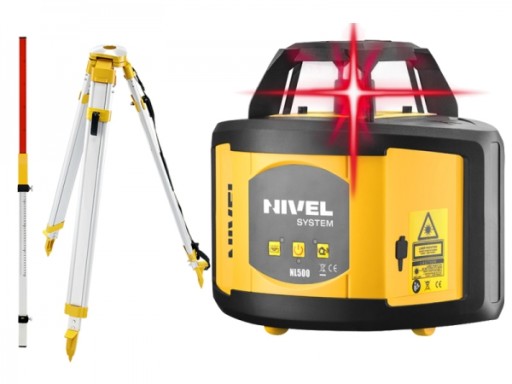 Niwelator obrotowy Nivel System NL500 to łatwe w użyciu urządzenie pomiarowe do wykonywania robót ziemnych w płaszczyźnie poziomej. Sprzęt umożliwia pracę zarówno we wnętrzach jak i na zewnątrz. Dzięki funkcji autopoziomowania, laser po włączeniu sam się poziomuje i jest gotowy do niwelacji. Solidne zabezpieczenie głowicy obrotowej chroni niwelator przed uszkodzeniami mechanicznymi, a szczelna obudowa pozwala na pracę w deszczu i kurzu (IP54). Urządzenie posiada elektroniczny kompensator eliminujący drgania i zapewniający poziomowanie płaszczyzny laserowej.