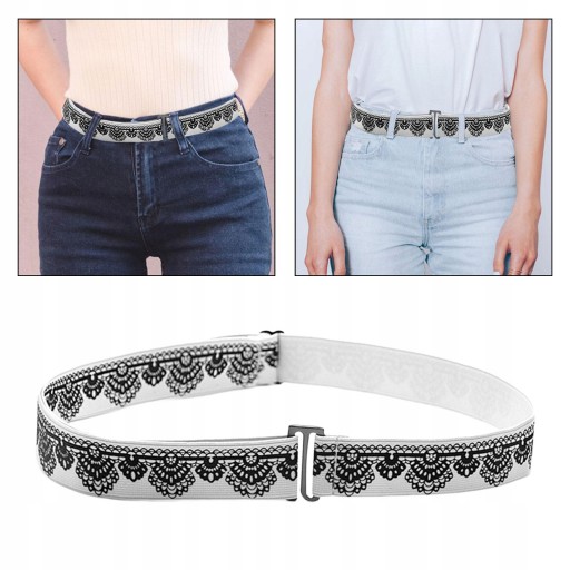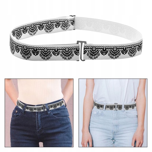 Damski elastyczny pasek Regulowane niewidoczne paski do spodni Spodnie Sukienki Biały kwiatowy