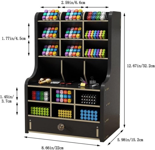 - ✅ Ultra-pojemność: Organizer na biurko ma wymiary 22 x 15,2 x 32,2 cm / 8,66 "x 5,98" x 12,67 ", ma 9 przegródek uchylnych, 6 płaskich dolnych przegródek i po prostu wysuwaną szufladę, może pomieścić nożyczki, długopisy, kredki, ołówki, markery, zakreślacze lub pomieścić małe przedmioty, takie jak klipsy, gumki, szpilki i inne.