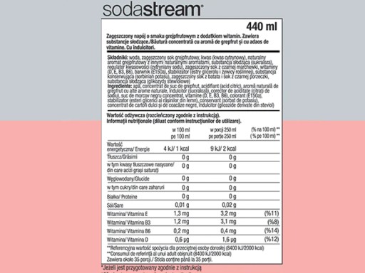 Co zawiera sok różowy grapefruit do saturatora SodaStream?