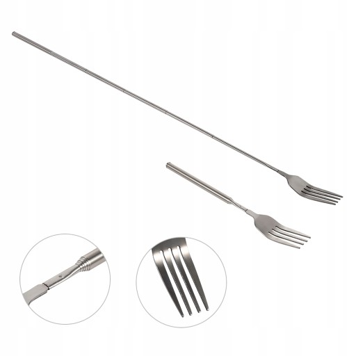 Czy kiedykolwiek czułeś, że twoje jedzenie jest zbyt gorące, a widelec jest za krótki, aby go użyć? Jeśli tak, przyjdź zobaczyć nasz nowy, wysuwany widelec z długą rączką. Długość uchwytu można regulować w zakresie od 22 do 64 cm (8,7 do 25,2 cala). Idealne sztućce do grillowania, obiadów, deserów, kiełbasek, hot-dogów, warzyw itp. Warto kupić!