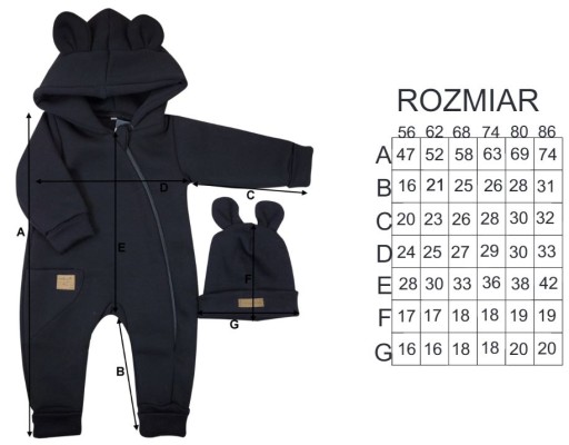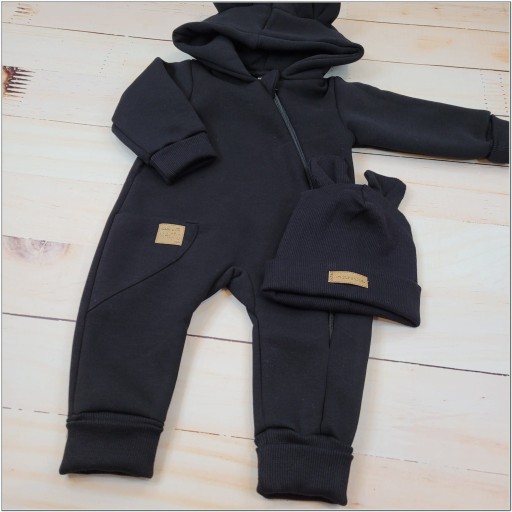 Kombinezon z ocieplanej dresówki + czapka black 56