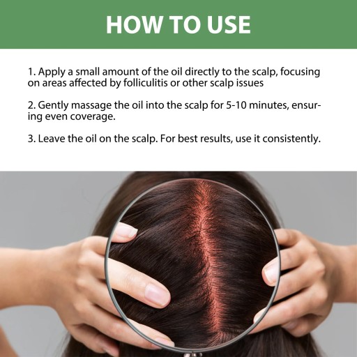 1. Nałóż niewielką ilość oleju bezpośrednio na skórę głowy, koncentrując się na obszarach dotkniętych zapaleniem mieszków włosowych lub innymi problemami ze skórą głowy.