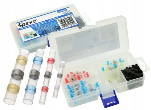 Zestaw wodoodpornych rurek termokurczliwych z pierścieniem cynowym. Rurki tego typ doskonale sprawdzą się podczas wykonywania instalacji elektrycznych jak i wykonywania napraw instalacji elektrycznych w domu, samochodach, łodziach, przyczepach itp. Używanie rurek termokurczliwych z cyna pozwala wykonać trwałe oraz wodoodporne połączenie dwóch przewodów, które możliwe jest do uzyskania dzięki wewnętrznej warstwie kleju.