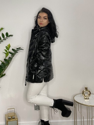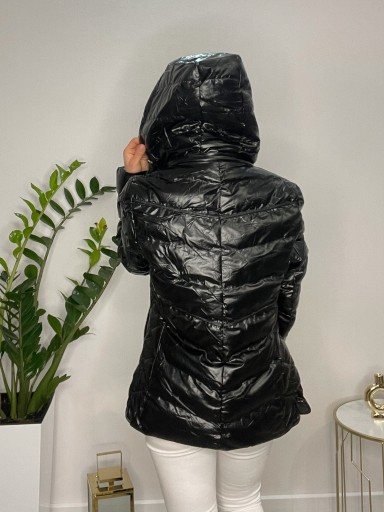 Jesienno-zimowa kurtka z kapturem w kolorze czarnym to idealny wybór na sezon jesienno zimowy. Kurtka dzięki wypełnieniu z puchu syntetycznego jest jednocześnie lekka a zarazem ciepła. Będzie świetnym wyborem na chłodne dni. Stanowić będzie idealne uzupełnienie jesienno- zimowych stylizacji.