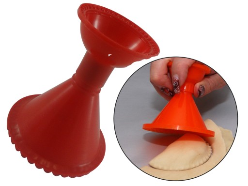 Specjalna forma pierogo-lejek o dwóch funkcjach: foremka do wykrawania pierogów (większą średnicą) oraz uszek (mniejszą średnicą), a po rozłożeniu zwykły lejek.