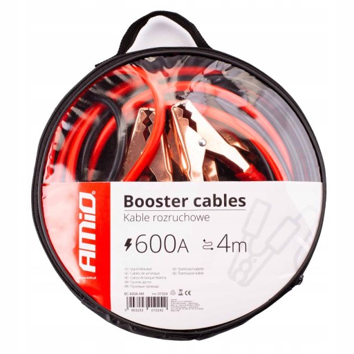 Kable rozruchowe 600A - 4m PRZEWODY KABLE ROZRUCHOWE PRZEWODY ROZRUCHOWE DO AKUMULATORA Wysokiej jakości zaciski typu krokodylki zapewniają pewny ścisk na klemach, co pozwala na bezproblemowe odpalenia praktycznie każdego pojazdu mechanicznego Gruby splot zapewnia dobre przewodzenie i szybki rozruch Praktyczny pokrowiec etui zabezpiecza przez zabrudzeniem i zapewnia wygodne przechowywanie w samochodzie, czy garażu Dzięki wygodnemu zamkowi błyskawicznemu, przewody będą zawsze solidnie zabezpieczone i magazynowane w wielorazowym opakowaniu na długi czas Wysoka jakość materiału z którego zostały zrobione kable sprawia, że posłużą one właścicielowi na lata ! Przydatne i niezawodne w nietypowych sytuacjach na drodze podczas podróży oraz w warsztatach samochodowych CHARAKTERYSTYKA: Długość przewodów: 4m Wytrzymałość na natężenie prądu: 600A Kolor: 1 przewód czerwony (+), 1 przewód czarny (-/masa) GŁÓWNE ZALETY: Najwyższej jakości, specjalnie dostosowany do prądu o wysokim natężeniu przewód, zabezpieczony trwałą izolacją. Klemy z mocną sprężyną oraz osłonami na uchwycie pozwolą podłączyć kable w trudno dostępnych miejscach. ZASTOSOWANIE W: busach samochodach osobowych koparkach ciągnikach rolniczych maszynach rolniczych pojazdach terenowych typu OFF ROAD quadach kamperach i innych ZESTAW ZAWIERA: Kable rozruchowe 600A 4M AMIO Etui