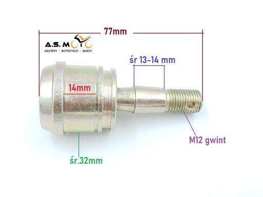 Sworzeń wahacza dolnego quad ATV wymienny z zabezpieczeniem segera.