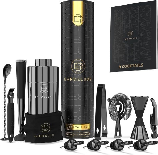 ✅ Ten kompleksowy zestaw zawiera opatentowaną miarkę do koktajli i tłuczek barmański z gumowanymi uchwytami, które zapewniają precyzję i komfort podczas mieszania.