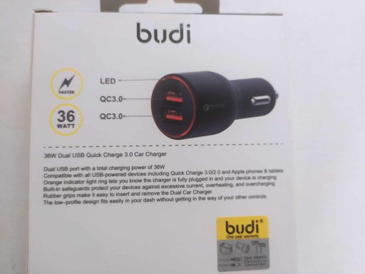Ładowarka samochodowa Budi 2x USB 36W QC 3.0 (czarna)