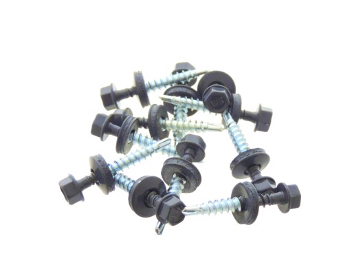 Wkręty farmerskie - samowiercące z podkładką EPDM wykonane w powłoce cynkowej do mocowania blachy, blachodachówek i obróbek blacharskich do podłoża drewnianego. Wkręty typu farmer lakierowane są wg. palety kolorów RAL