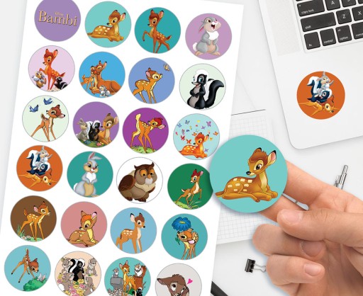 W zestawie otrzymujesz arkusz A4 zawierający aż 24 naklejki o średnicy 40mm.