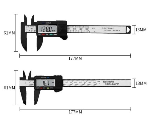 Dokładność około 0.2 mm/ 0.01 cala Bateria SR44/LR44 1.5 V Zakres pomiaru 0-150 mm / 6 cali