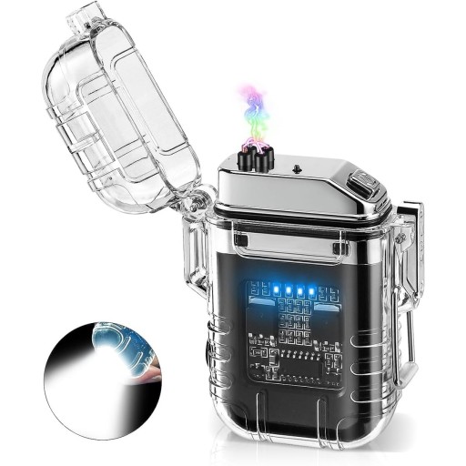 Наружная электрическая зажигалка водонепроницаемая и ветрозащитная со светодиодным фонариком