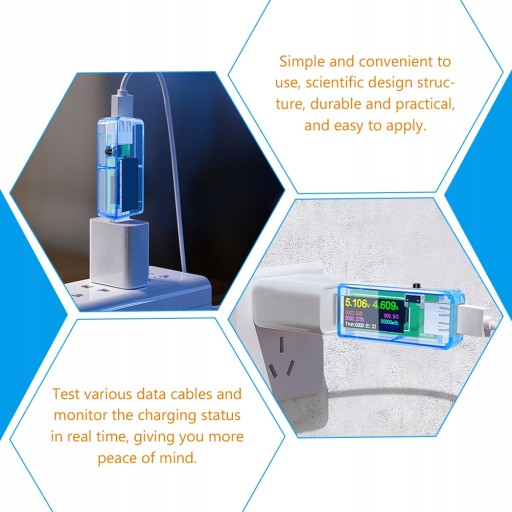 Testuj różne kable danych i monitoruj stan ładowania w czasie rzeczywistym, zapewniając sobie większy spokój.