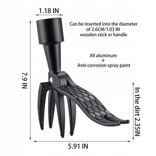 Nadaje się do kłączy, takich jak mniszek lekarski, chwast serowy, oset i trawa krabowa. Aluminiowy korpus jest tak lekki, że nie musisz się martwić, że ciężar przygnieci korzenie, nikt z nas nie chce, aby przygniatał korzenie podczas używania, co w pierwszej kolejności zniweczy cel używania ręcznego wyrywacza chwastów.