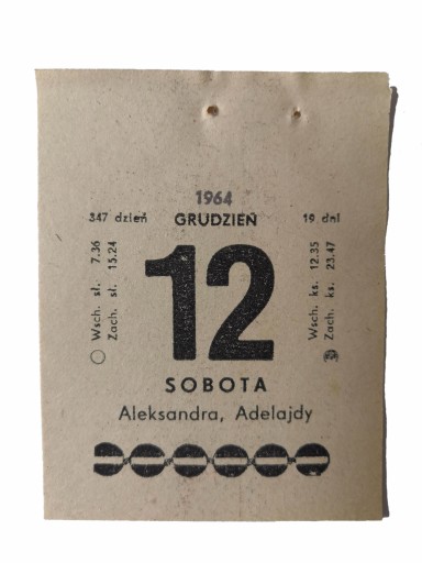 Tu kupisz oryginalną kartkę wyjętą z kalendarza zdzieraka z 1964 roku. Dzień i miesiąc oczywiście wybierzesz sam(a). Nie zapomnij podać daty w "uwagach do zakupu". Przykładowa kartka na zdjęciu obok.