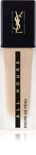 Kryjący podkład Encre De Peau All Hours to perfekcyjne krycie, matowe wykończenie i nawet 24-godzinna trwałość.Encre De Peau All Hours od Yves Saint Laurent to podkład w płynie, który zapewnia doskonałe krycie nawet przez całą dobę - od pierwszego spojrzenia w lustro o poranku do późnej nocy.Dzięki długotrwałej formule, makijaż nie wymaga poprawek w ciągu dnia.Wodoodporna formuła Encre De Peau All Hours zawiera kompozycję drobnych pigmentów oraz żywicę silikonową, by zapewniać odpowiednie krycie, rozświetlać cerę oraz zapewnić jej długotrwałe, matowe wykończenie. Podkład zawiera także filtr ochronny SPF 20.