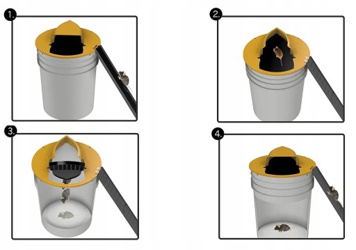 - Jeśli wlejesz do wiadra wodę lub olej, pułapka będzie dla myszy śmiertelna.