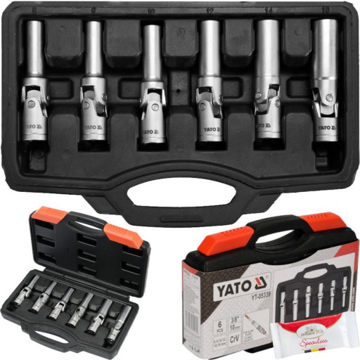 Zestaw kluczy z przegubem przeznaczonych do montażu i demontażu świec żarowych.