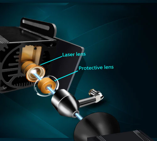 Moduł laserowy jest wyposażony w wymienną soczewkę i pyłoszczelną osłonę, która powoduje porażenie soczewki dymem.