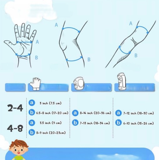 Nakolanniki i nałokietniki: jeden rozmiar. Odpowiedni dla dzieci w wieku 3-10 lat.