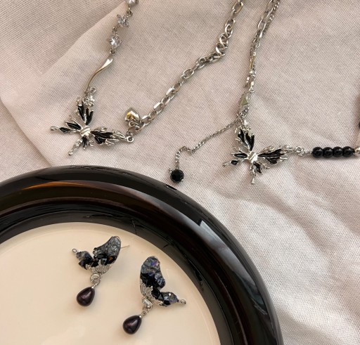 Серьги с лесными бабочками, колье из кристаллов черной бабочки