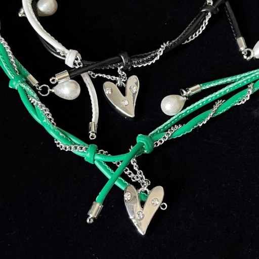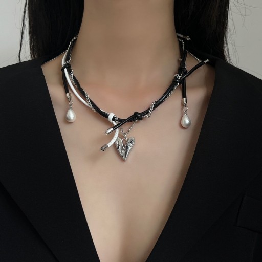 Завязанная запутанная кожаная цепочка на ключицах любит панк