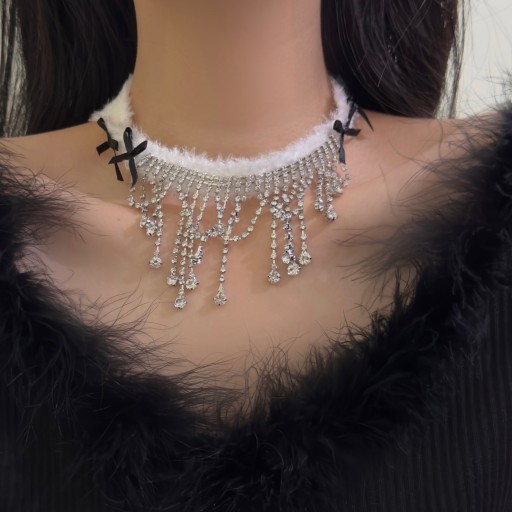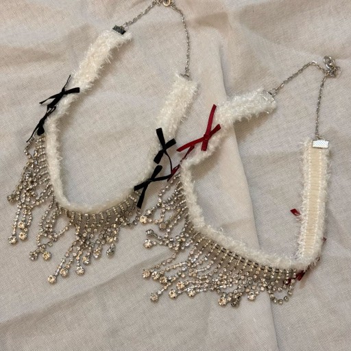 Kadzidełko zawór złota kokardka pluszowy naszyjnik z frędzlami