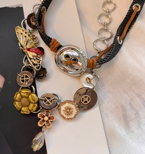 Nowy chiński naszyjnik z czarnego złota z muszli z drewna