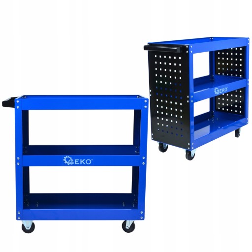 Profesjonalny, solidnie wykonany wózek warsztatowy pozwalajacy utrzymać porządek na stanowisku pracy. Wózek posiada ergonomiczny przykręcany uchwyt ułatwiający transport wózka. Wózek wyposażony został w trzy pojemne półki. Ponadto posiada 4 koła jezdne w tym 2 skrętne z hamulcem.
