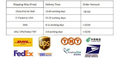 3.Sometimes the delivery times maybe delay due to the strict custom inspection or weather problem,Please waiting patienly .Thanks.