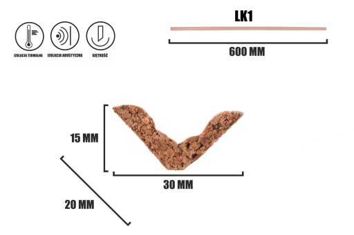 - LK1 - listwa korkowa narożnikowa wewnętrzna LK1 o długości 60cm