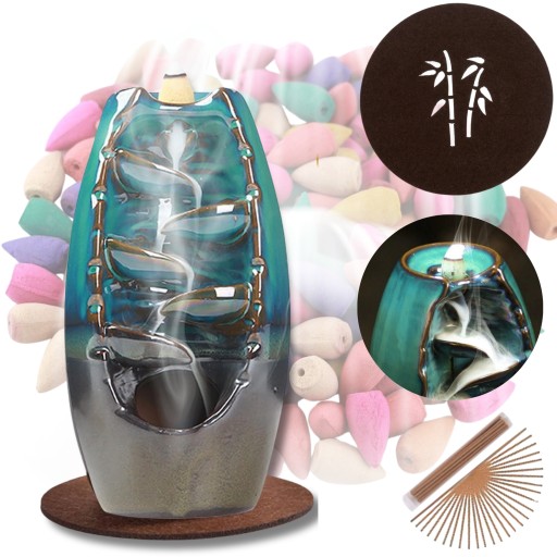 KOMINEK ZAPACHOWY WODOSPAD Ceramiczny Kadzidło Zestaw + KADZIDEŁKA STOŻKOWE