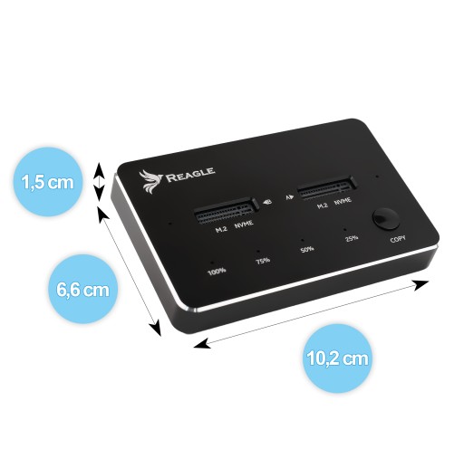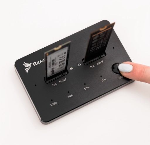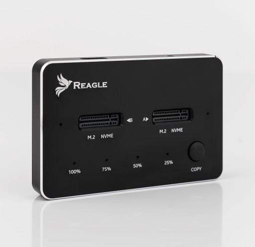 Model RY9M2 od Reagle to zewnętrzny adapter dla dwóch dysków SSD M.2 NVMe z funkcją klonowania offline.