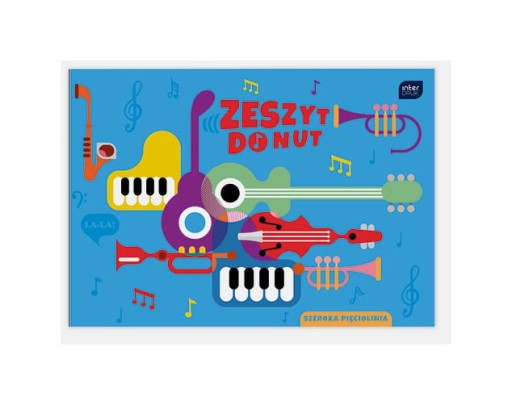 Zeszyt do nut z motywami muzycznymi z szeroką pięciolinią w powiększonym rozmiarze B5.