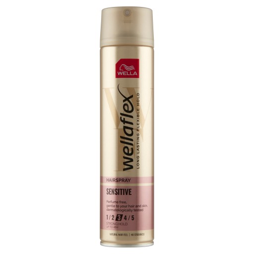 Lakier do włosów. Skutecznie utrwali każdą fryzurę, bez efektu sklejenia i sztywnej skorupy. Pomimo zastosowania pasma są elastyczne, sprężyste oraz wyglądają bardzo naturalnie. Wersja Sensitive jest bardzo delikatna i nie zawiera w sobie żadnych substancji zapachowych oraz składników drażniących skórę. Posiada utrwalenie o mocy 3 STRONG HOLD, które jest mocne i utrzymuje fryzurę w ryzach nawet do 24 godzin. Lekka formuła nie obciąża pasm oraz sprawia, że są odświeżone. Lakier dostępny jest o pojemności 250 ml.
